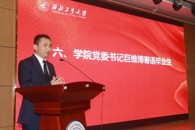 党委书记巨维博为毕业生寄语,他希望同学们勤勤恳恳,历练心志,在平凡的工作岗位上建功立业;希望同学们勤于学习,勇于实践,不断提高自身综合能力,努力成才;希望同学们无愧青春,不负韶华,带着母校的殷切期望、师长的深情嘱咐、亲友的诚挚关怀,始终秉承西工大精神。