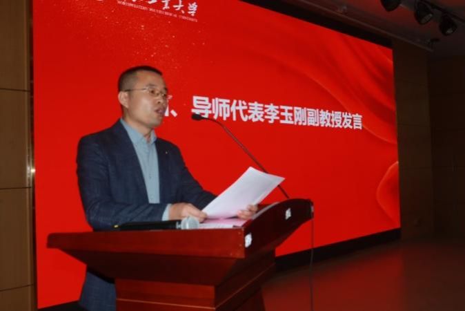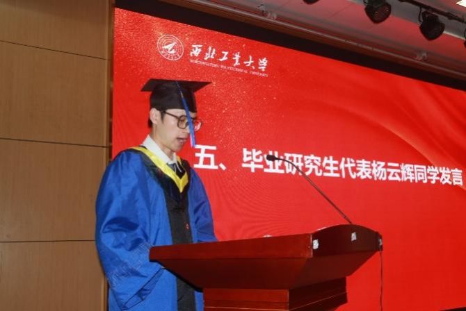 在颁奖结束后,研究生导师代表李玉刚副教授发言,李玉刚老师向大家送出了诚挚的祝福,希望各位同学在未来的道路上能够继续牢记作为西工大人的使命,不忘初心,砥砺前行。